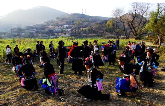 麻栗坡县城寨村“荞菜节”铜鼓舞场面。杨青华摄