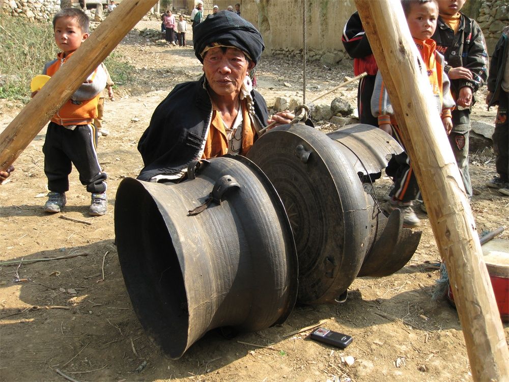 麻栗坡县城寨彝族铜鼓舞鼓手。杨青华摄