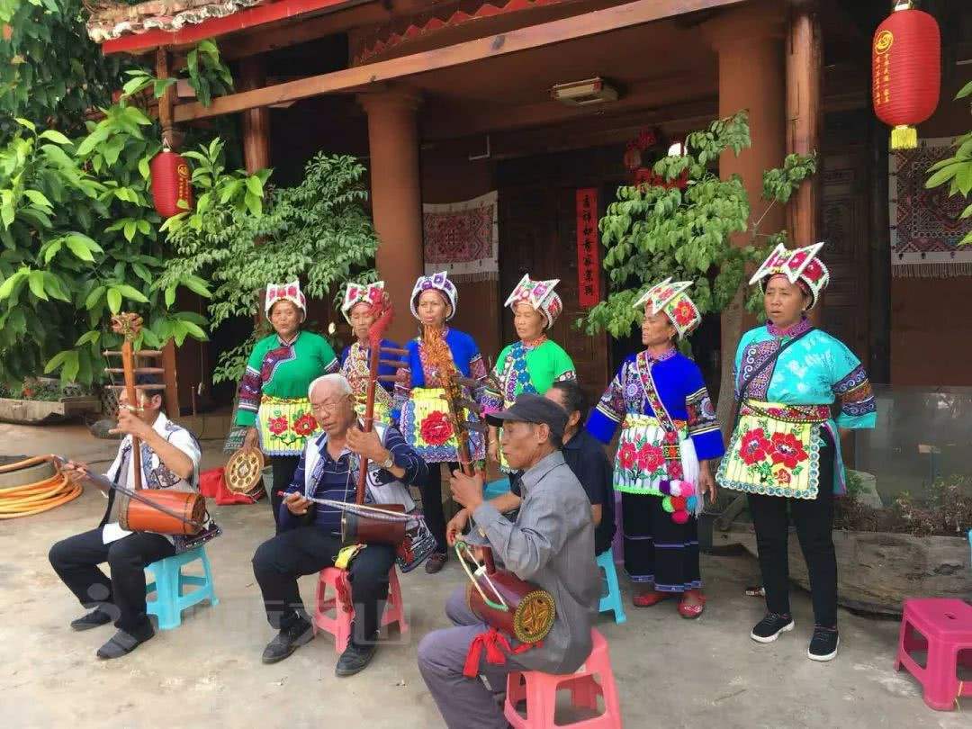 据村里国家级非遗传承人宗天珍介绍,花倮人摇曳的舞姿和鲜艳的服饰都蕴含着彝族花倮支系特有的民族文化:跳舞时不断扭动身躯寓意彝族花倮人的先祖为了摆脱迁徙过程中缠绕在身上的蛇。服饰上纵向排列的三角意为狗牙,横向排列的三角意为荞叶,圆圈为鱼眼,碎花指一切花草树木,帽檐流苏的三角代表荞叶,帽顶高高立起,缀着流苏,形似鸟头。这些指代包含了陆地、水生和天上的动物,涵盖了与人类共生的花草树木。彝族先祖们将世间万物绘于衣物上,想表达的是天佑生灵,世间万物和谐共生的美好祈愿。而荞叶在服饰上的多次出现则是因为传说彝族花倮人的先祖濒死之际靠吃荞麦存活了下来,自此,彝族花倮人对荞菜有了一定程度的自然崇拜。