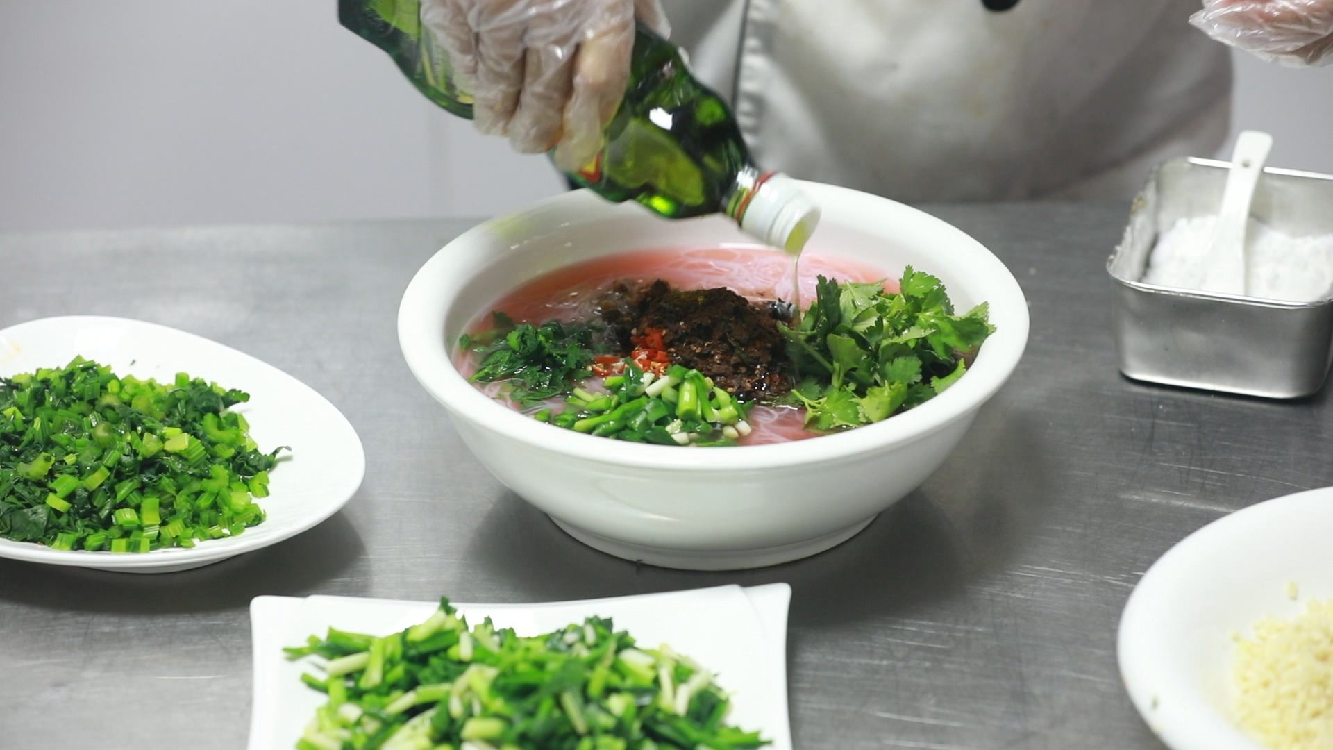 粉红的酸汤、青绿的佐料、雪白的粉丝,让酸汤粉丝这道佳肴色、香、味俱全,汤汁酸爽不失鲜美,成为了广南人年夜饭桌上必不可少的酸辣开胃菜。