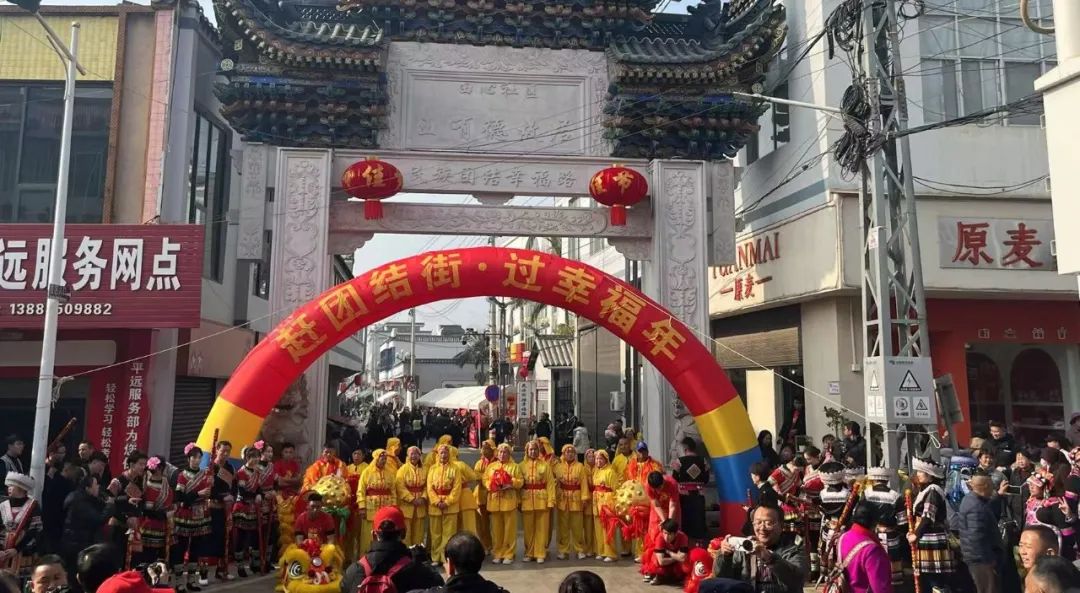 “今天的开街活动很热闹,不仅表演好看,还有好多美食、有趣的民俗活动,年味十足!”2024年春节前夕,砚山县平远镇改造提升后的“民族团结幸福路”正式开街,壮族草人舞、苗族芦笙舞、彝族弦子舞等精彩节目一路上演,吸引了大批购年货、赏民俗、品美食的人群,来自文山市的陈女士逛得饶有兴致。