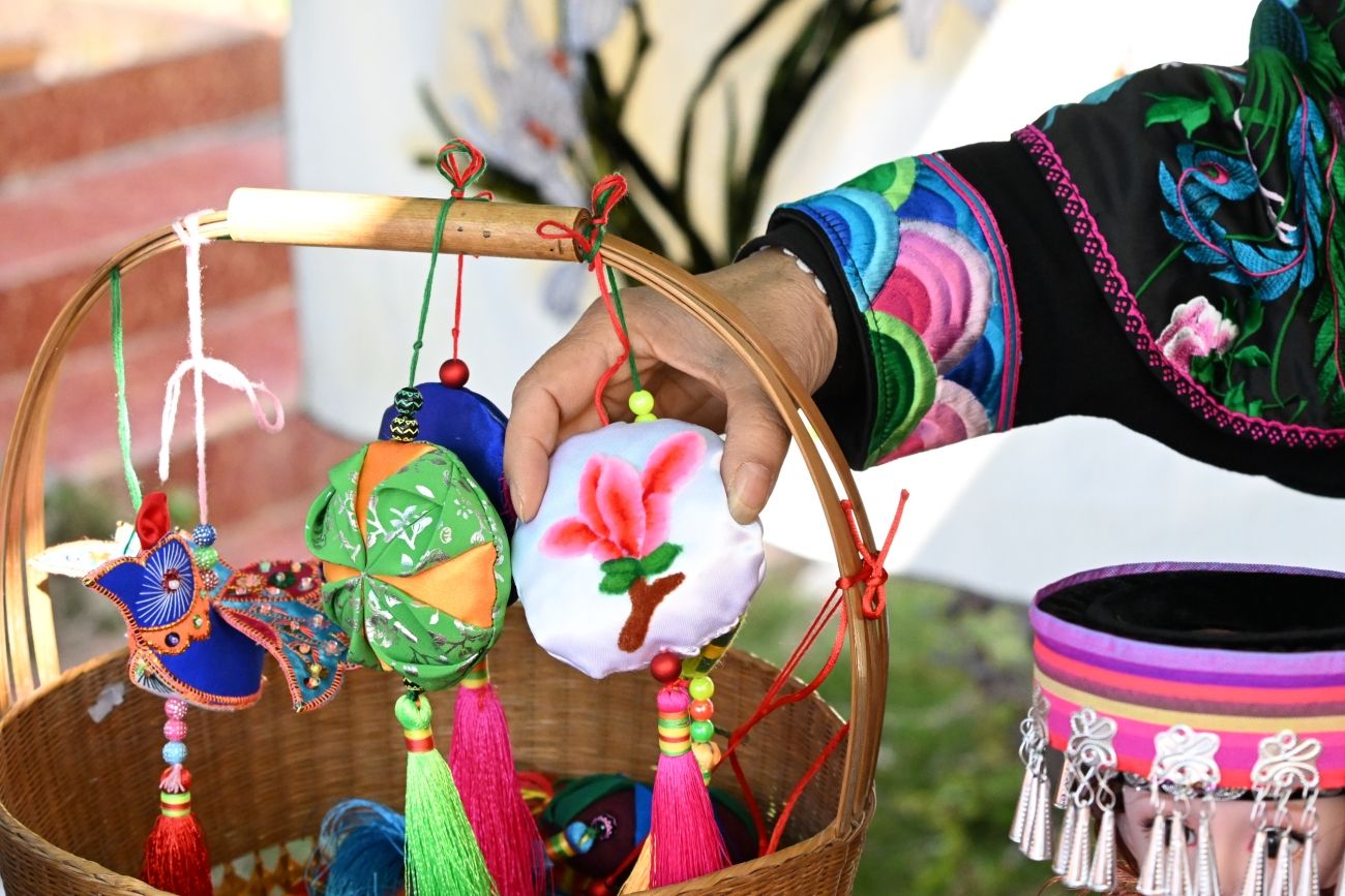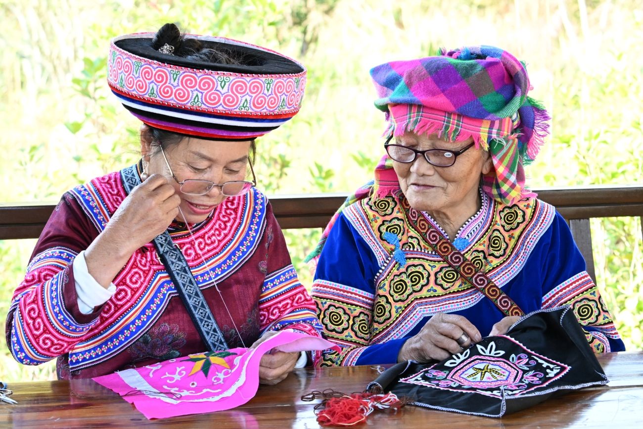 11月21日,云南省文山壮族苗族自治州西畴县举办“锦绣文山·巧手织梦”刺绣活动。活动现场,绣娘们身穿艳丽的民族服饰,忙着理线、穿针,指尖翻飞间,一个个花样精美、款式新颖的刺绣产品陆续完成,流畅而细腻的技法将丰富的图案呈现得惟妙惟肖。