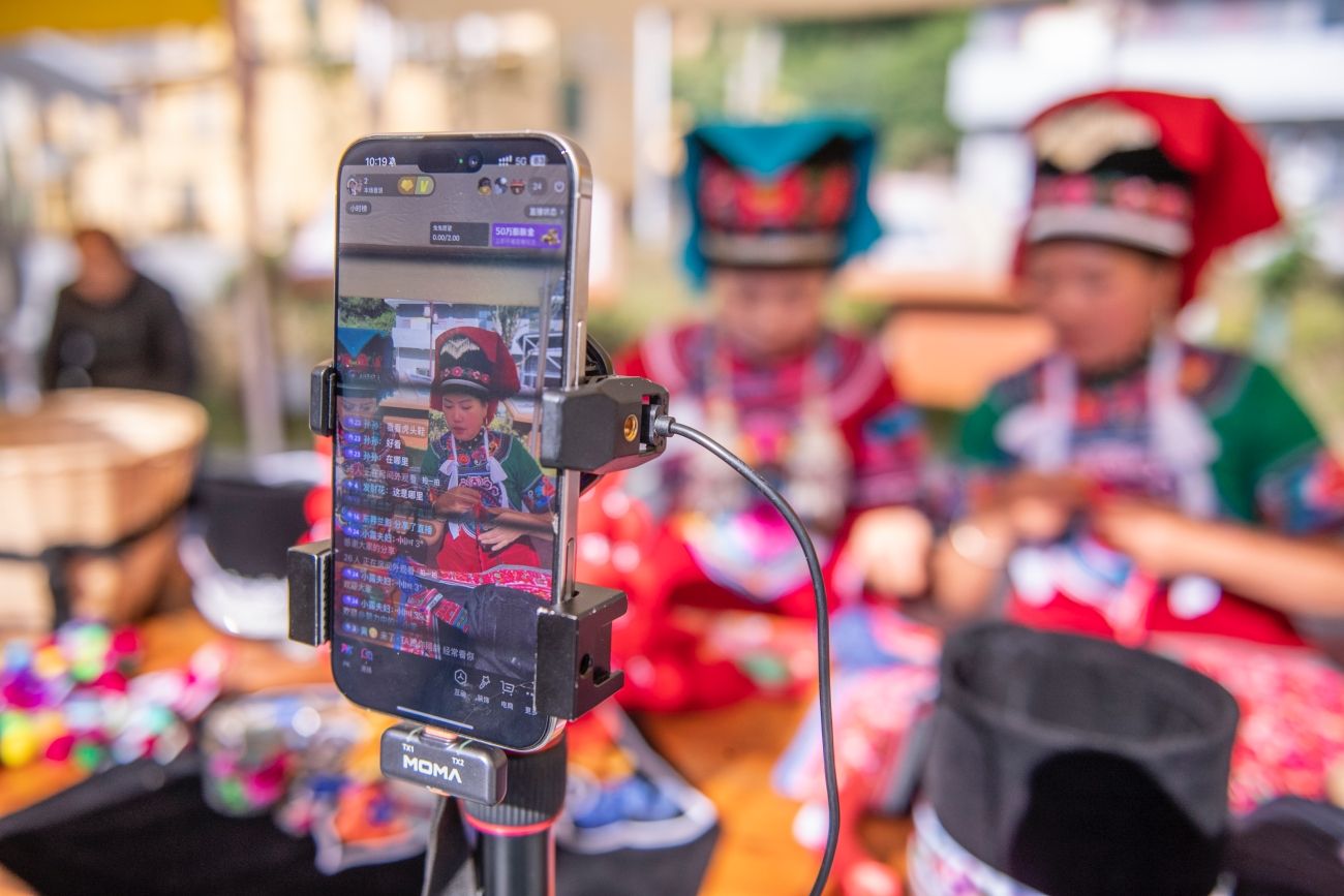 直播助力刺绣活动宣传(11月21日摄)。新华网发(熊平祥 摄)