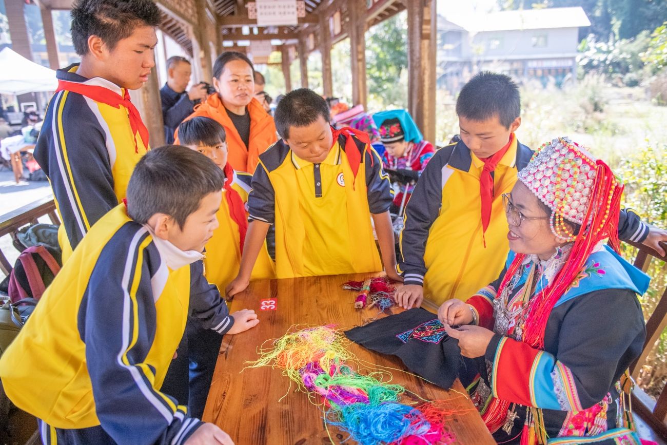 刺绣活动吸引学生围观(11月21日摄)。新华网发(熊平祥 摄)