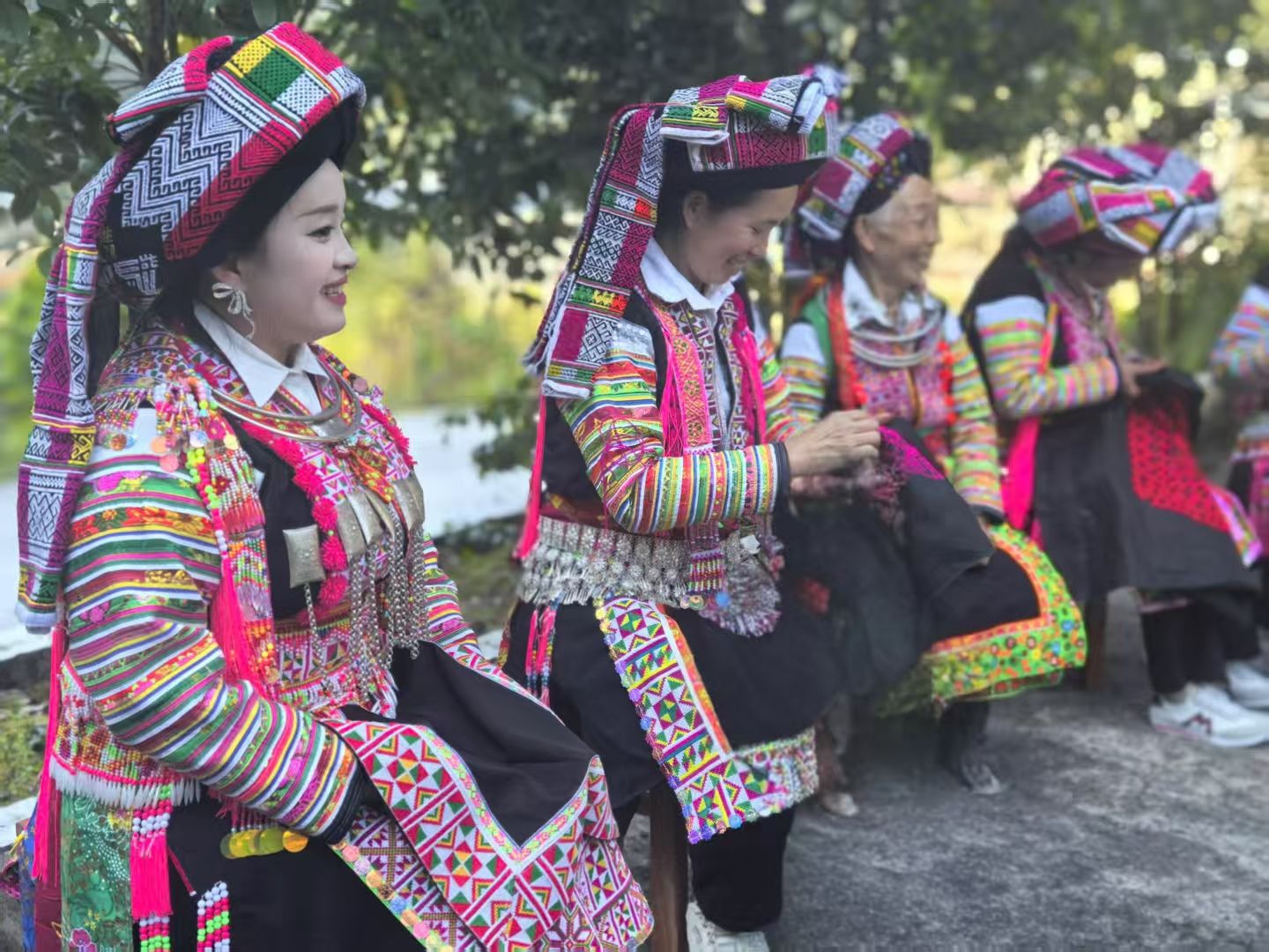 角瑶刺绣不仅是一项传统手工艺,更是瑶族文化的“活化石”。“每逢重大节日,像婚丧嫁娶这样的场合,村里人都会穿戴我们角瑶刺绣制作的服饰。”村民邓登英介绍道。