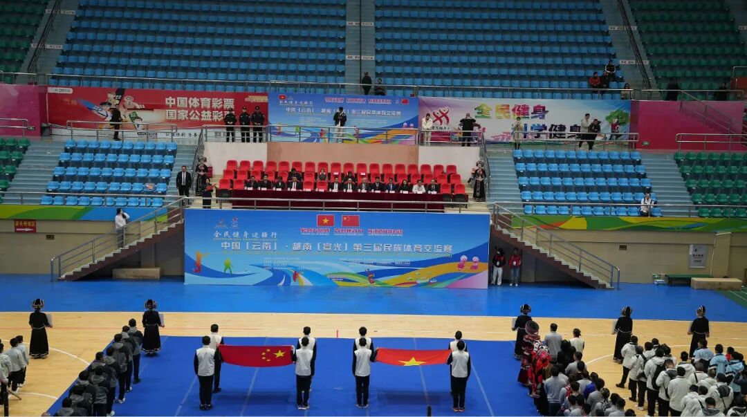 12月9日上午,以“展边关风情秀边陲活力凝滇越民族友谊”为主题的全民健身边疆行——中国(云南)·越南(宣光)第三届民族体育交流赛在文山州富宁县天成体育馆开幕,中越两国运动员们将在赛场上同台竞技、切磋技艺,共同凝聚起深厚的友谊纽带。