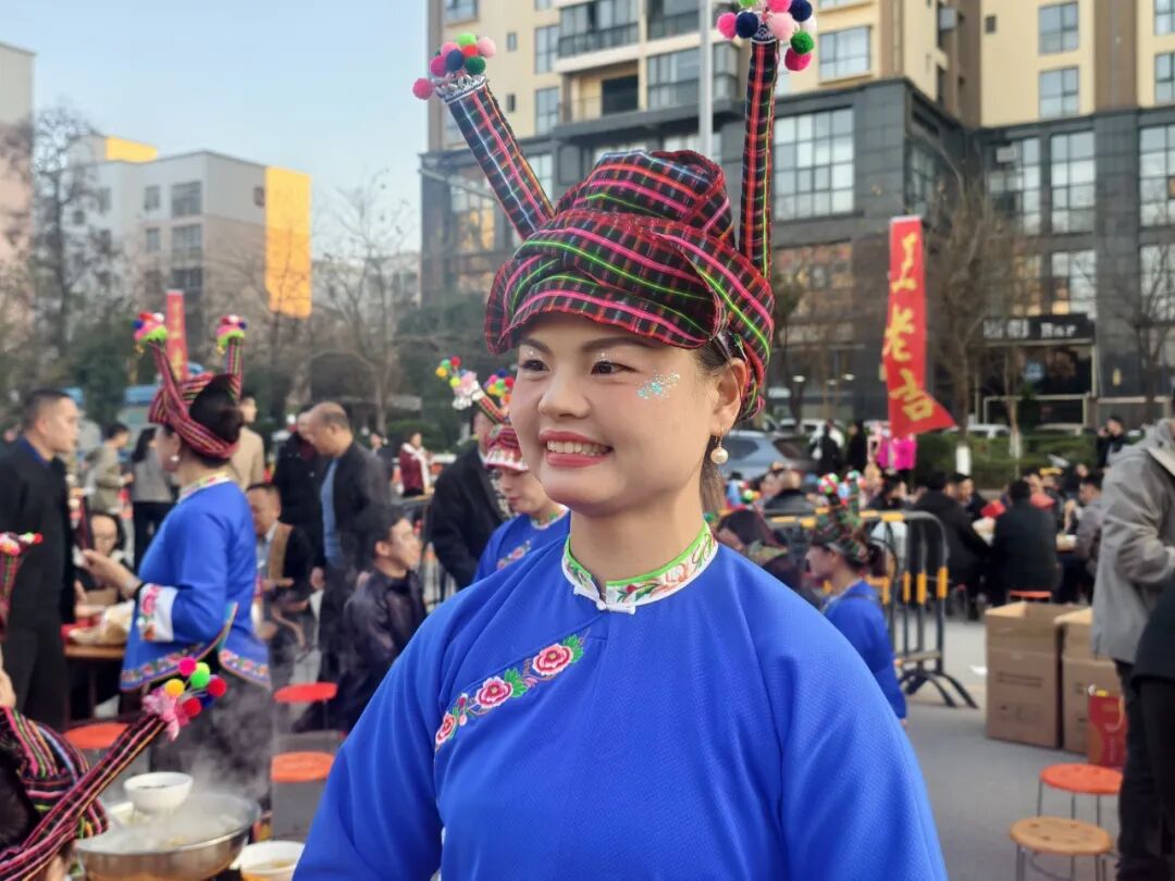 壮族群众刚嬢嬢说:“我太高兴了,来参加这个彝族年活动,吃这个长街宴,感受到广南少数民族的这种热情,太板扎啦!”