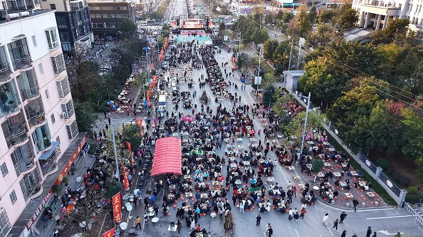 活动氛围从当日午后开始升温。17点整,极具广南特色的长街宴开席,长长的宴席沿着街道铺开,桌上摆满了特色美食,香气四溢。各族宾客欢聚一堂,共享美味、共话情谊,在味蕾盛宴中提前感受节日喜悦与民族团结的暖意。
