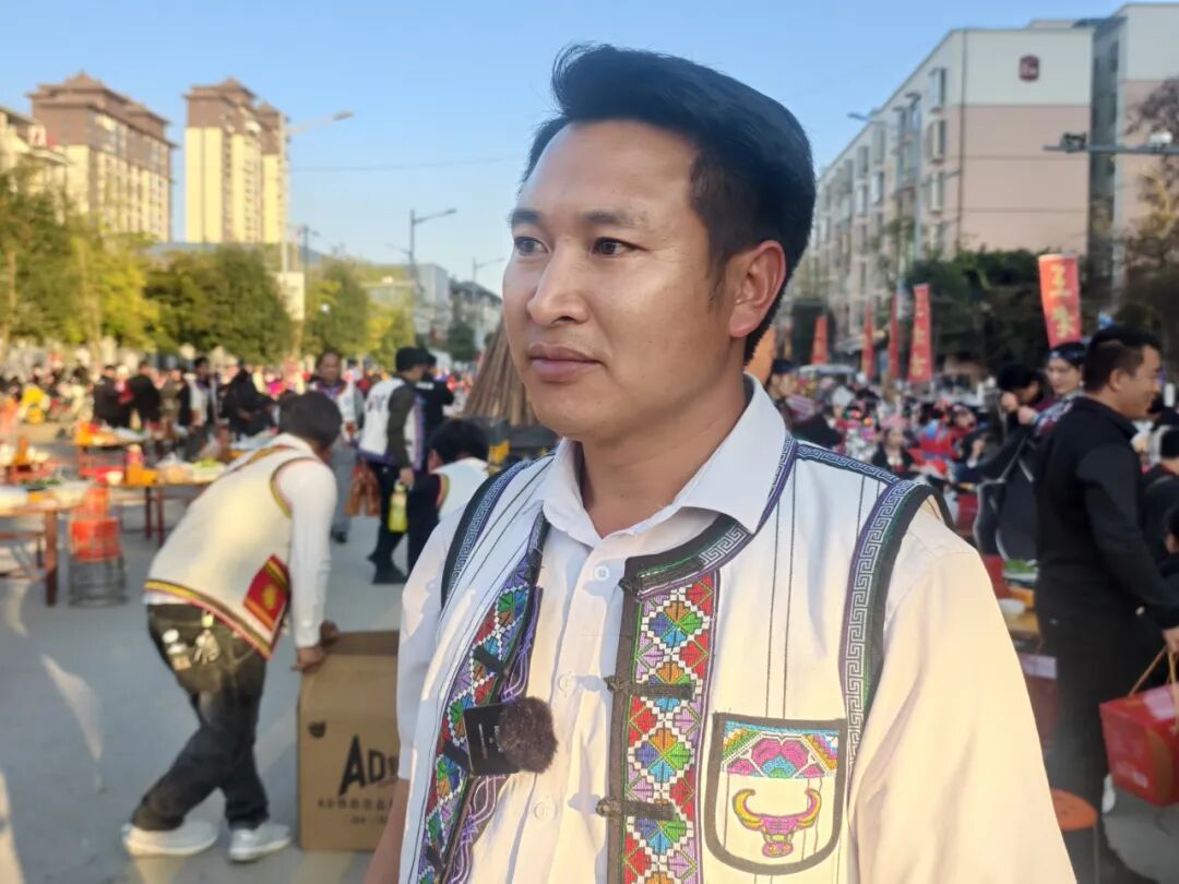 彝族群众沙龙高说:“大家一起吃长街宴,晚上还有很多节目,高高兴兴来到这里过彝族年。”