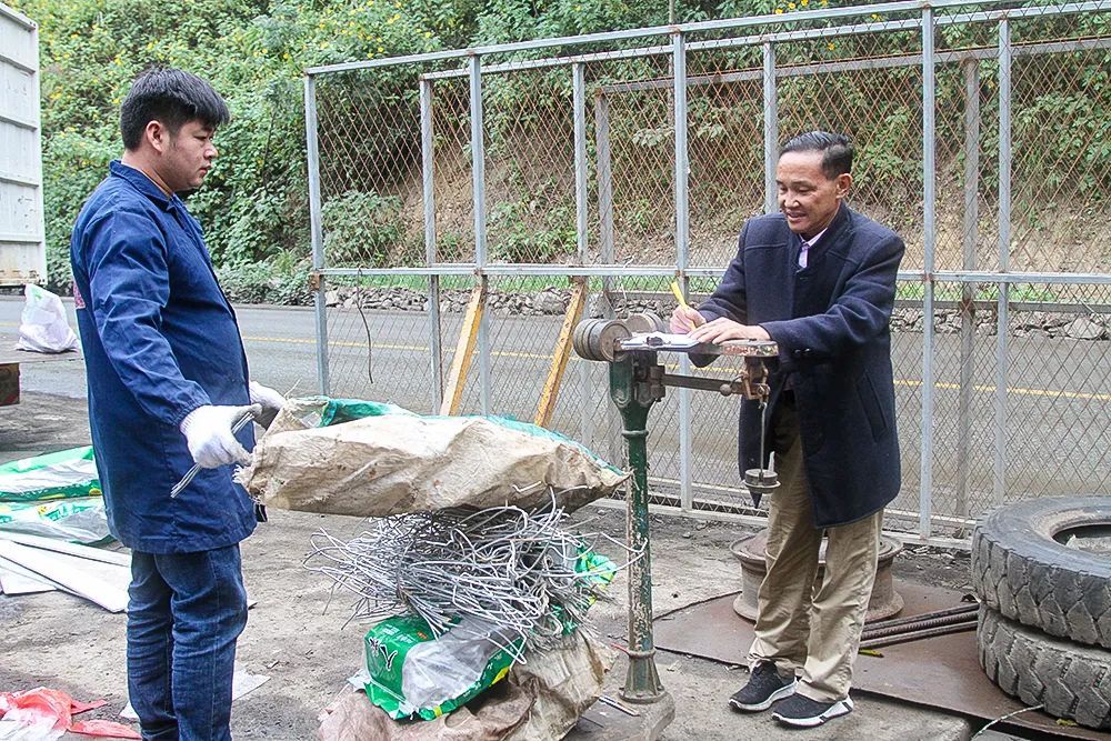天空飘着毛毛细雨,记者赶到韦福刚的富宁县金属回收公司时,映入眼帘的便是韦福刚单腿支撑在地,双手扶着磅,在熟练地给一包包金属过秤。
