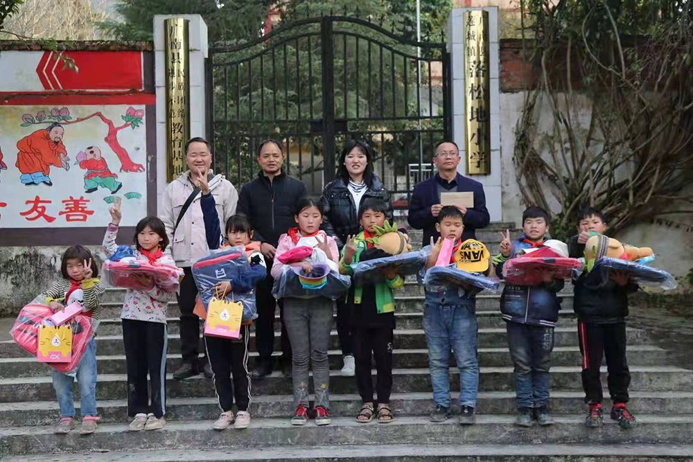 农加贵(第二排左二)和学生们在落松地小学前的合影