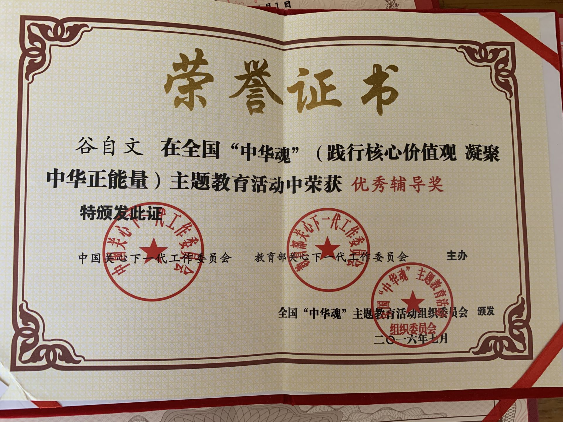 退休以后,谷自文多次被州委党校评为“优秀共产党员”;2016年,在中国关工委和教育部关工委主办的全国“中华魂”主题教育活动中获“优秀辅导奖”;2016年12月,他被省关工委聘为云南省关工委“五老”宣讲团成员。