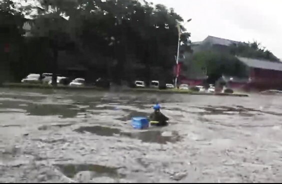 4月28日,突如其来的冰雹暴雨,让文山城部分路段沦为“汪洋”。然而,在龙海路大众超市路段的一片“汪洋”中,一位外卖小哥骑着电动车涉水而过,只为把外卖及时送到用户手中。他在大水中送外卖的视频也在网络上飞快传播,瞬间火遍全文山。