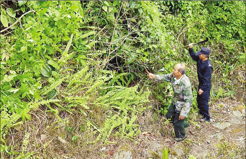 图为邓富才和他的孙子在巡山