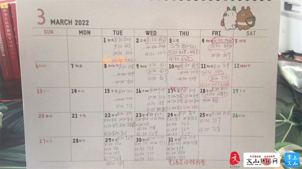 “这些数字代表的是要处理的案子的案号,每天的工作都很多,目前来说,案件已经安排到4月底了,5月的工作也已开始排期了。”何秋杰介绍道。