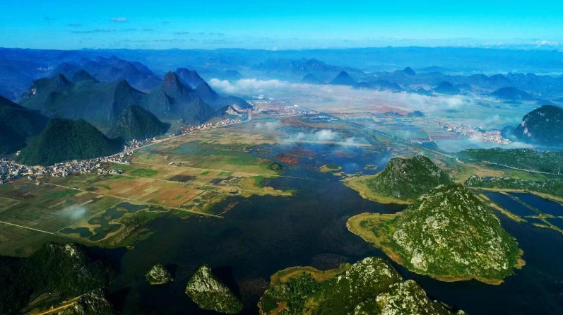 2017年,普者黑喀斯特国家湿地公园通过验收,正式成为“国家湿地公园”。纪军用了三个月的时间,“泡”在湿地里拍摄动植物,他的作品被做成宣传册,以此让大家更加了解湿地。目前,湿地公园里有维管束植物823种、鸟类208种、鱼类89种、两栖动物6种、爬行动物10种、兽类16种。良好的生态环境和独特秀美的山水田园风光,成为众多摄影师的“天堂”,纪军每年要拍摄上万张普者黑喀斯特国家湿地公园的照片。“不仅是拍美景,人文历史也有它的变化,我都拍下来。作为一名摄影师,看着湿地发展变化,环境越来越好,越来越多的游客到这里来,很高兴。我还会继续用镜头记录,让更多的人来关注湿地,了解湿地的美。”纪军说。