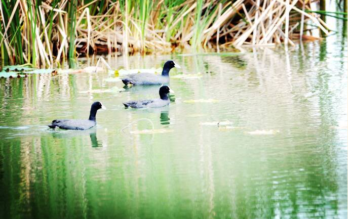 “你看,在水草边的那几只鸟是黑水鸡,以前能拍到的很少,现在多啦。”纪军赶紧拿起相机抓拍。湿地公园内特有的生态环境吸引了大量的鸟类,每一次来,纪军都细心观察鸟类繁衍生息的规律,也深刻感受到生物多样性的变化。“2012年我第一次拍到一只大鸟,当时都不知道是什么鸟,后来多方查询,直到2013年才知道叫钳嘴鹳。过去拍到的是比较常见的鸟,拍着拍着不认识的鸟越来越多,还要买鸟类的书籍来对比才知道。鸟从几只到成群,越来越多。”纪军说。