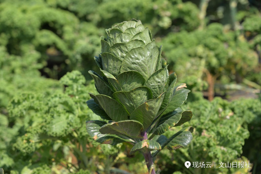 在叶菜类展示区,展示了甘蓝类和秋葵,总共35种,其中羽衣甘蓝为甘蓝的园艺变种,叶片有光叶、皱叶、裂叶、波浪叶等,叶色也极为丰富,有黄、白、粉红等颜色,叶片形态美观,心叶色彩绚丽如花,整株似一朵盛开的牡丹花。