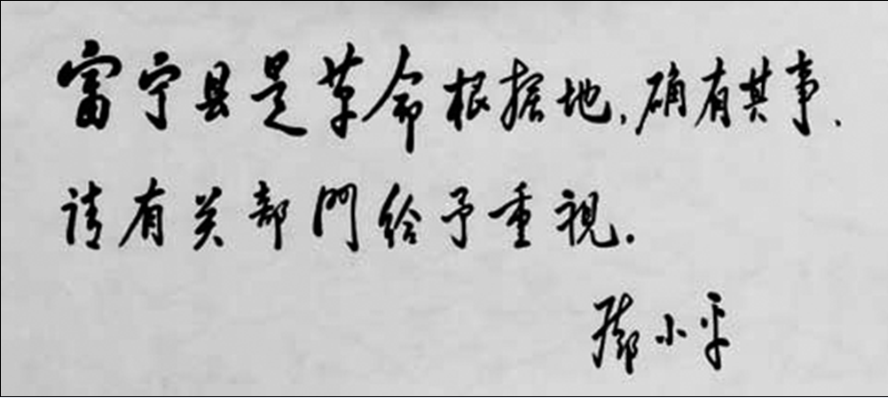 滇黔桂边区革命根据地,是中国革命低潮时期,在南方坚持开展游击战争的重要根据地之一,是党在云南少数民族聚居区建立的第一块红色根据地,它“创立时间最早、斗争范围最广、坚守时间最长、政权最完善、少数民族参与最多、牺牲最大、发挥核心作用最大”。1975年4月,邓小平作出了“富宁县是革命根据地,确有其事,请有关部门给予重视”的重要批示,充分肯定了其历史地位和光辉业绩。