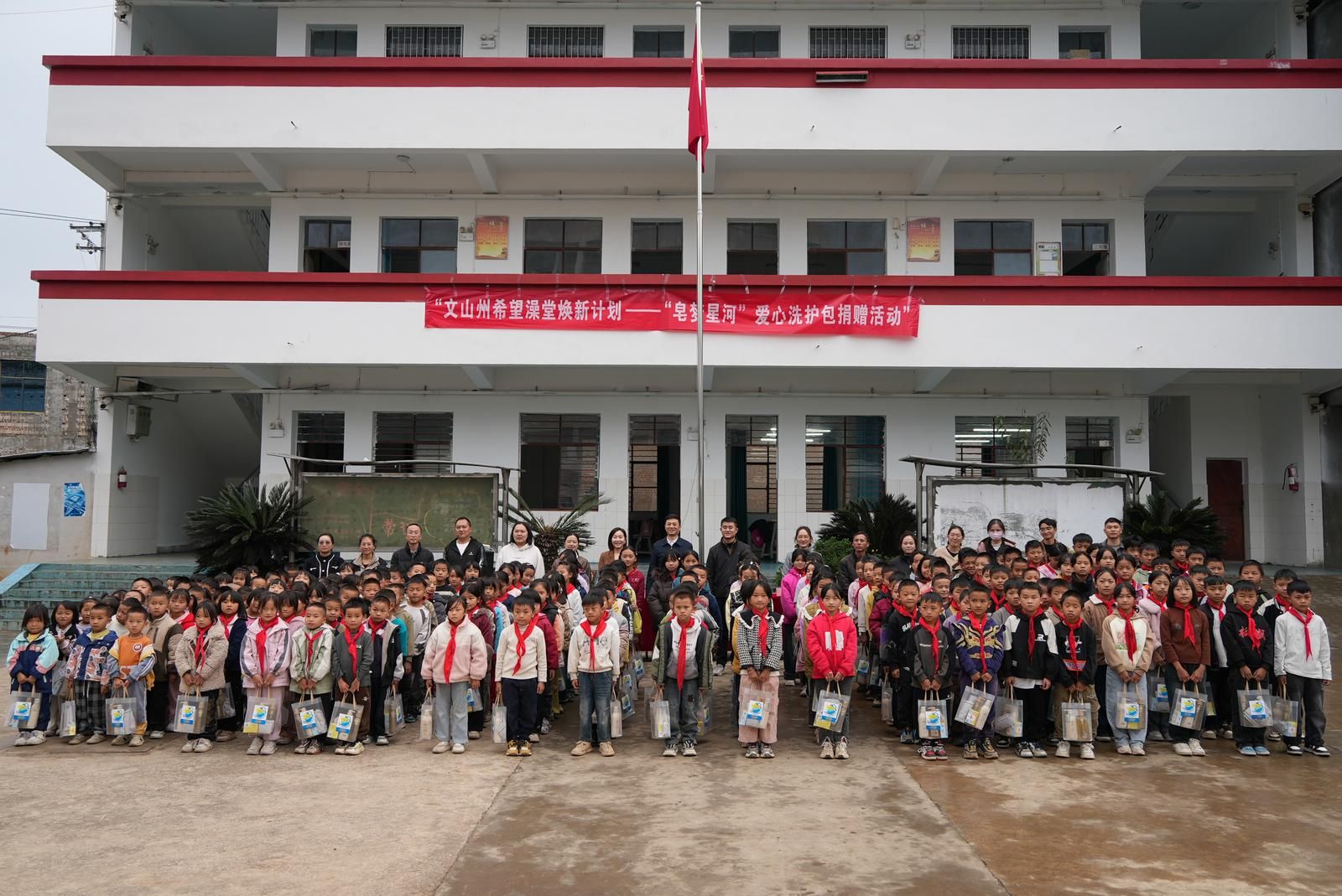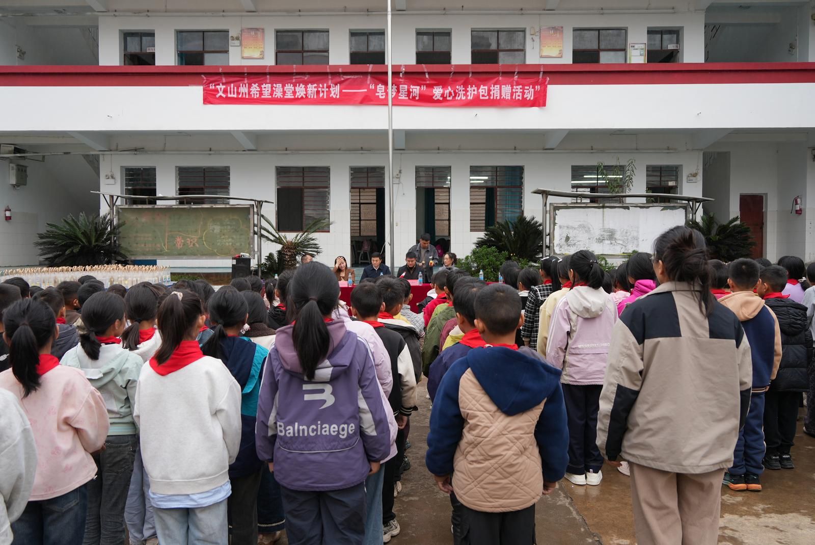 文网讯 一条毛巾、一瓶洗发水、一块香皂……这些看似寻常的洗护用品,对于文山大山深处许多住校的孩子来说,却是一份能带来洁净、健康与自信的珍贵礼物。11月17日,一场名为“皂梦星河”的爱心洗护包捐赠活动,让文山市薄竹镇白租革小学充满了欢声笑语与融融暖意。
