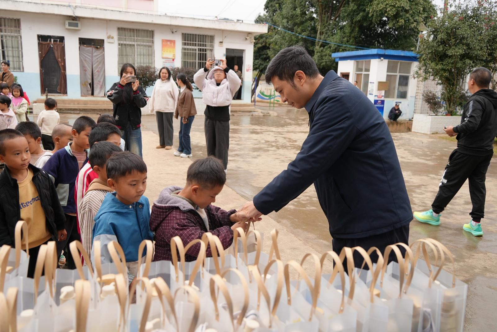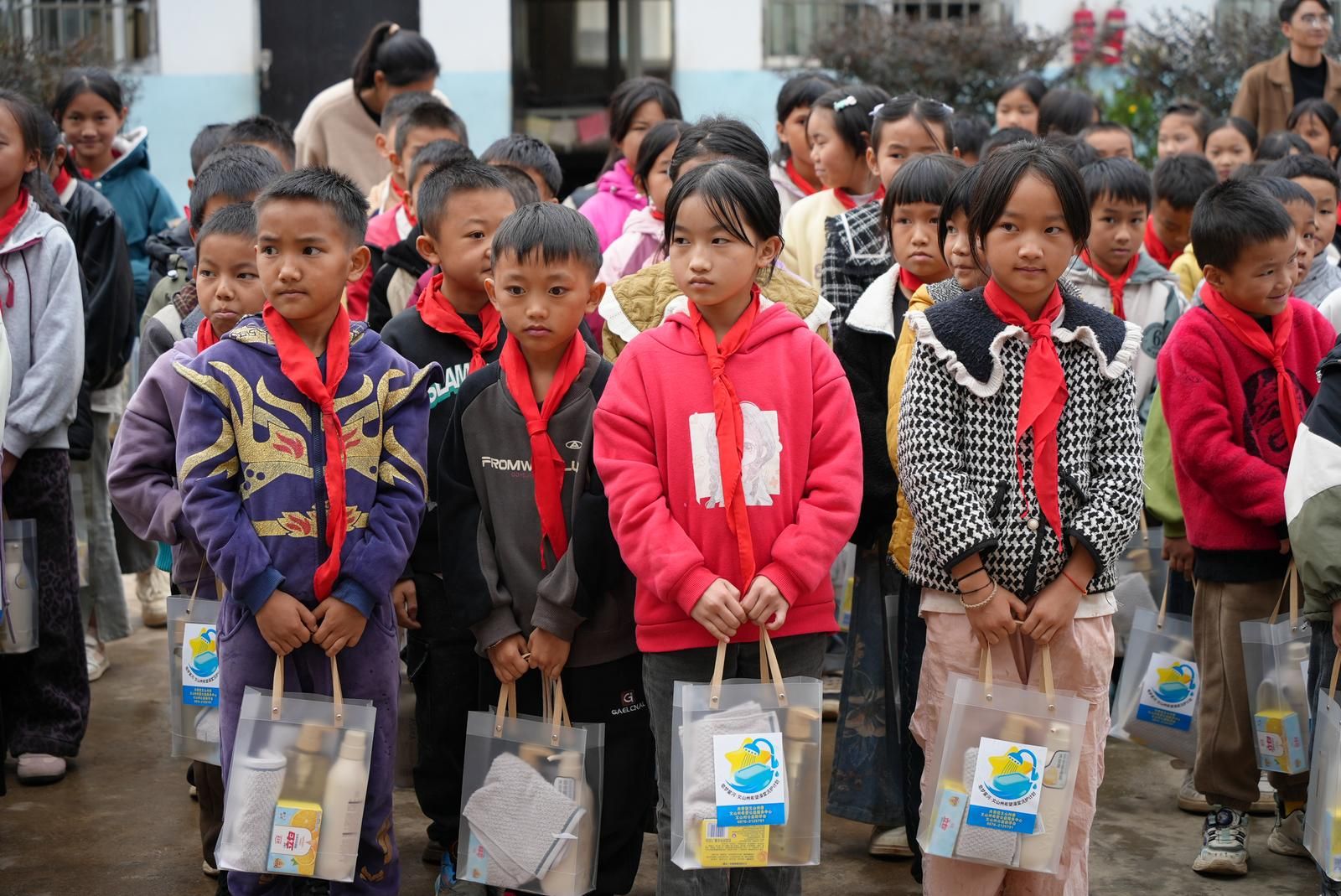 当孩子们接过崭新的洗护包时,脸上绽放出灿烂的笑容。学生代表激动地说:“谢谢远方的叔叔阿姨,我们一定会勤洗手、讲卫生,好好学习,不辜负大家的期望!”这份跨越山河的爱心,不仅洁净了孩子们的双手,更滋润了他们的心田。