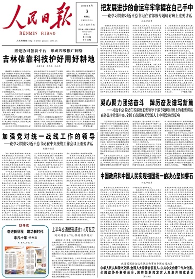 《人民日报》(2022年08月03日 第01版)