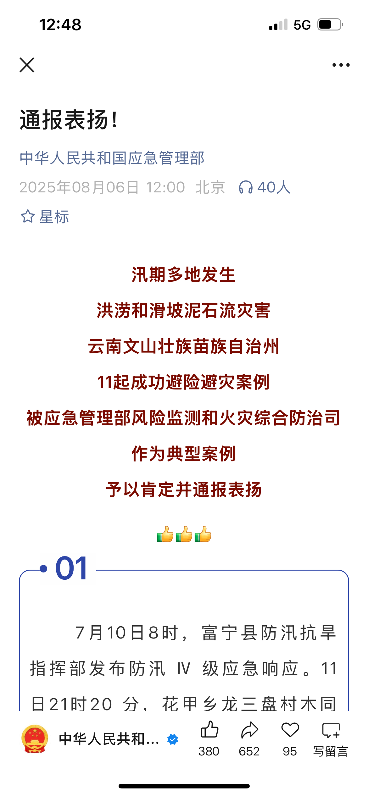 应急管理部的通报表扬,本质是对文山防汛“三位一体”体系的肯定:以群测群防为预警核心、以机制保障为响应支撑、以责任闭环为落实底线。这11起案例证明,防汛救灾不是单一部门的战斗,而是“预警灵、响应快、责任实”的系统工程。文山的实践之所以能成为全国典范,正在于它把“人民至上、生命至上”转化为可操作、可复制的具体举措——这既是其获表扬的核心逻辑,更是各地防汛救灾可借鉴的“文山经验”。