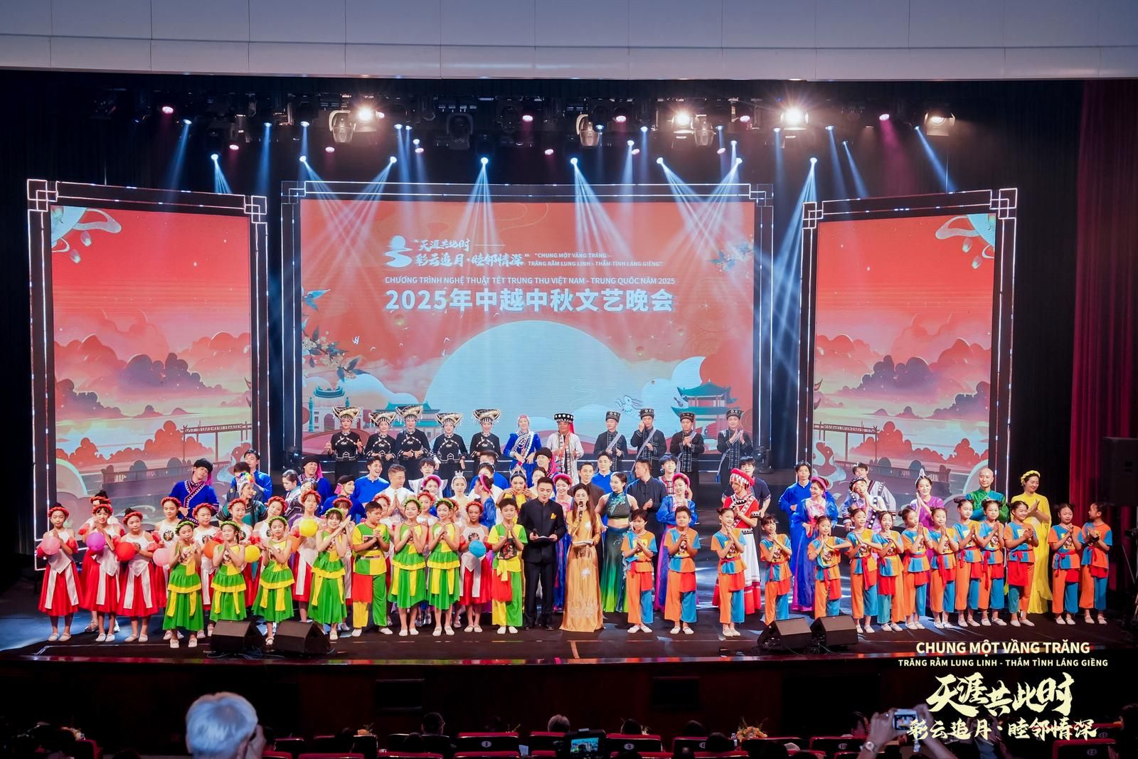 9月25日晚,由中华人民共和国驻越南大使馆、越南文化体育与旅游部、中共云南省委宣传部共同主办的“天涯共此时——彩云追月·睦邻情深”2025年中越中秋文艺晚会,在越南国家歌舞剧院隆重举行。本次晚会是中越建交75周年暨“中越人文交流年”的重要活动之一,以中秋团圆佳节为纽带,深度融合两国传统文化与现代艺术,成为一场彰显睦邻友好、促进文明互鉴的文化盛事。