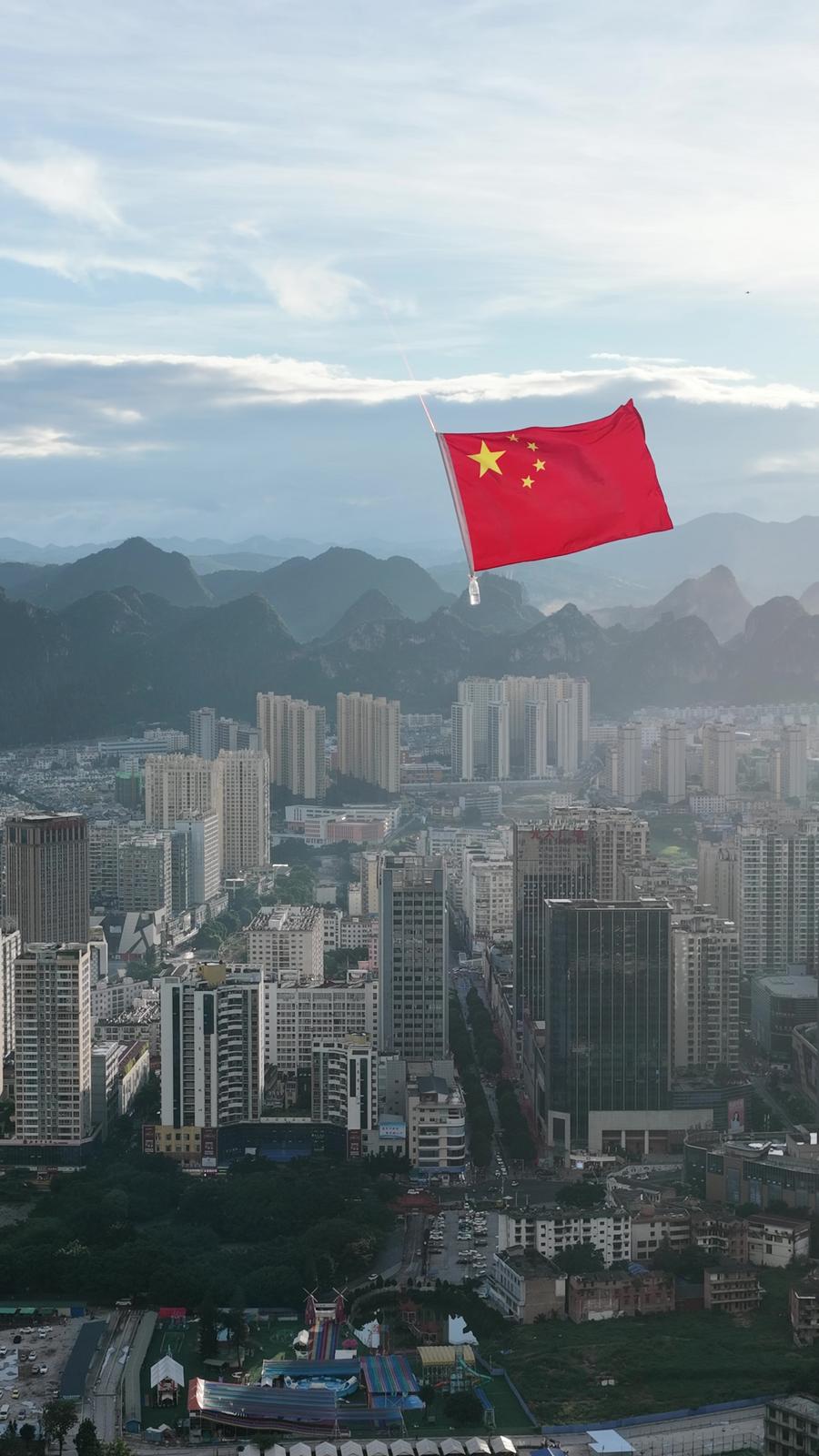 “在祖国生日到来之际,总要做点有意义的事。我们是玩无人机的,就想通过挂国旗来表达对国家的爱。如果信仰有颜色,那一定是五星红旗的颜色。祝祖国繁荣昌盛!”无人机爱好者涂一难掩激动。