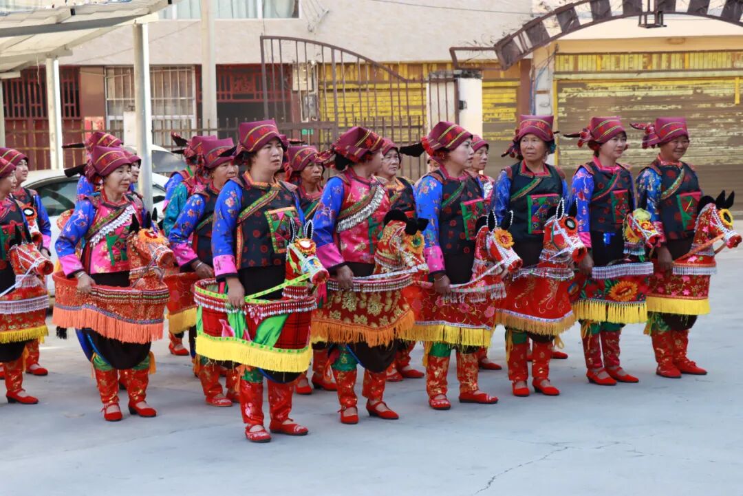 在牛头寨村,省级非物质文化遗产代表性项目纸马舞成了师生们与传统文化对话的纽带。刚进村,身着明艳民族盛装的妇女们便已等候。她们将一匹匹色彩艳丽的纸马套在腰间,随着音乐响起,大家即刻起舞:指尖轻抖,纸马头便灵活抬起;脚步轻点,又似马儿提蹄踏步;集体绕圈时,纸马在腰间跃动;驻足仰头时,纸马头高扬,似在长啸。整套动作行云流水,看得师生们连连惊叹,纷纷记录精彩瞬间。