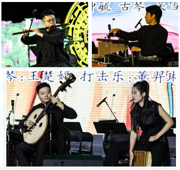 随后,《山歌》由柳琴、琵琶、中阮、大阮四重奏呈现,带领观众领略民族乐器细腻的声部对话。《妙旋古道》融合竹笛、泥哇呜、古琴、古筝与打击乐,乐曲在古老音色中注入现代气息。