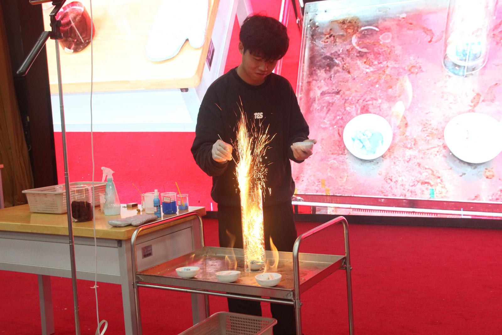 活动内容丰富多样,涵盖了化学实验表演、生物实验展示、机器人格斗比赛、木梁承重挑战以及纸结构设计比赛等多个环节。在化学实验表演中,学生们通过精心设计的实验,展示了化学反应的奇妙现象,“大象牙膏”化学实验让现场尖叫声一片。