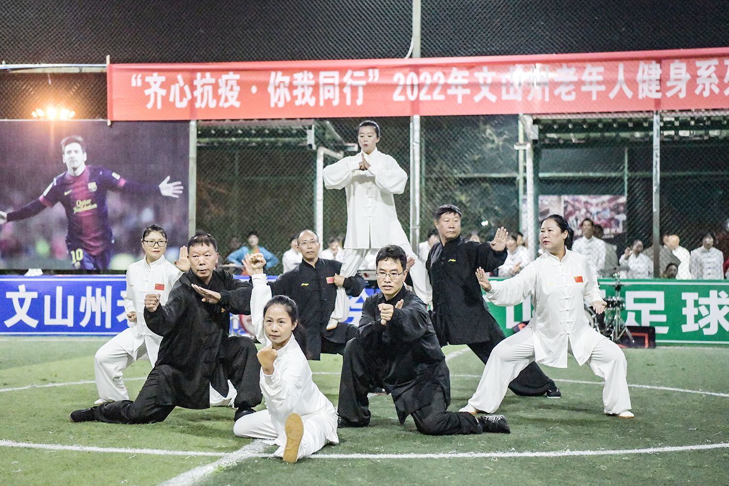 文网讯 为满足文山州老年人日益增长的体育文化活动需求,给老年人营造运动快乐、健康生活的氛围,5月20日,以“齐心抗疫、你我同行”为主题的文山州老年人健身系列活动启动仪式暨文山州中老年人武术展演在文山市体育中心五人制体育场举行。