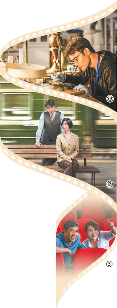 ①电视剧《理想照耀中国》剧照。②电视剧《奔腾年代》剧照。③电视剧《装台》剧照。