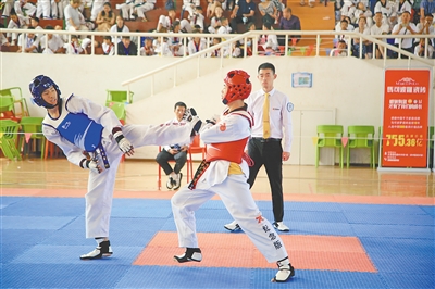 8月5日,2022年云南省中小学生跆拳道锦标赛文山州分站赛在文山北实验小学开赛。此次比赛由云南省学生体育协会主办,文山州跆拳道协会承办,文山北实验小学协办,分高中、初中、小学、幼儿4个组别。图为比赛现场。