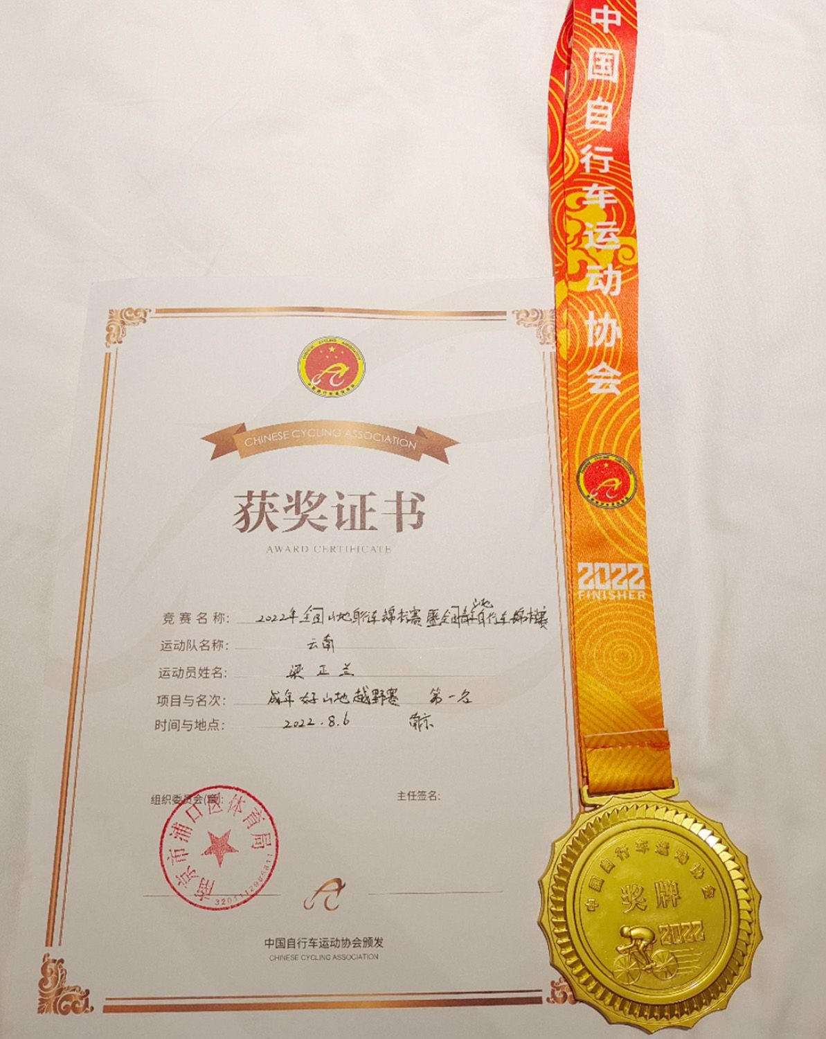 据了解,作为中国山地自行车专项比赛最高级别赛事,2022年全国山地自行车锦标赛暨全国青年山地自行车锦标赛本次锦标赛赛事地点设于南京浦口水墨大埝景区,吸引了来自山东、香港、甘肃、江苏等全国各地的选手参赛。在8月6日进行的成年女子组越野赛的比赛中,代表云南队出战的梁正兰率先过线获得冠军。
