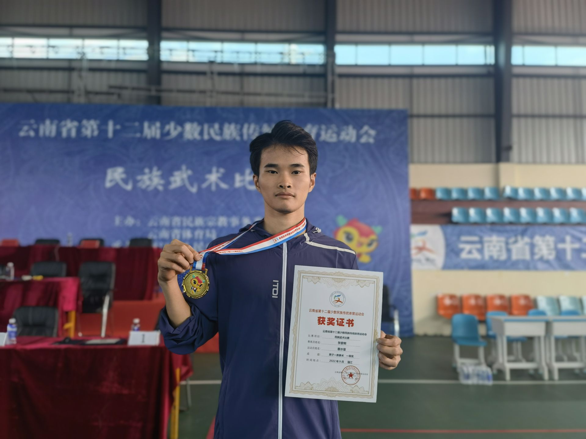 “很高兴第一次参加云南省民族运动会就取得第一名,感谢教练团队对我的训练,在以后的训练和比赛中,我会更加努力,为文山争光。”蔡水章激动地说。