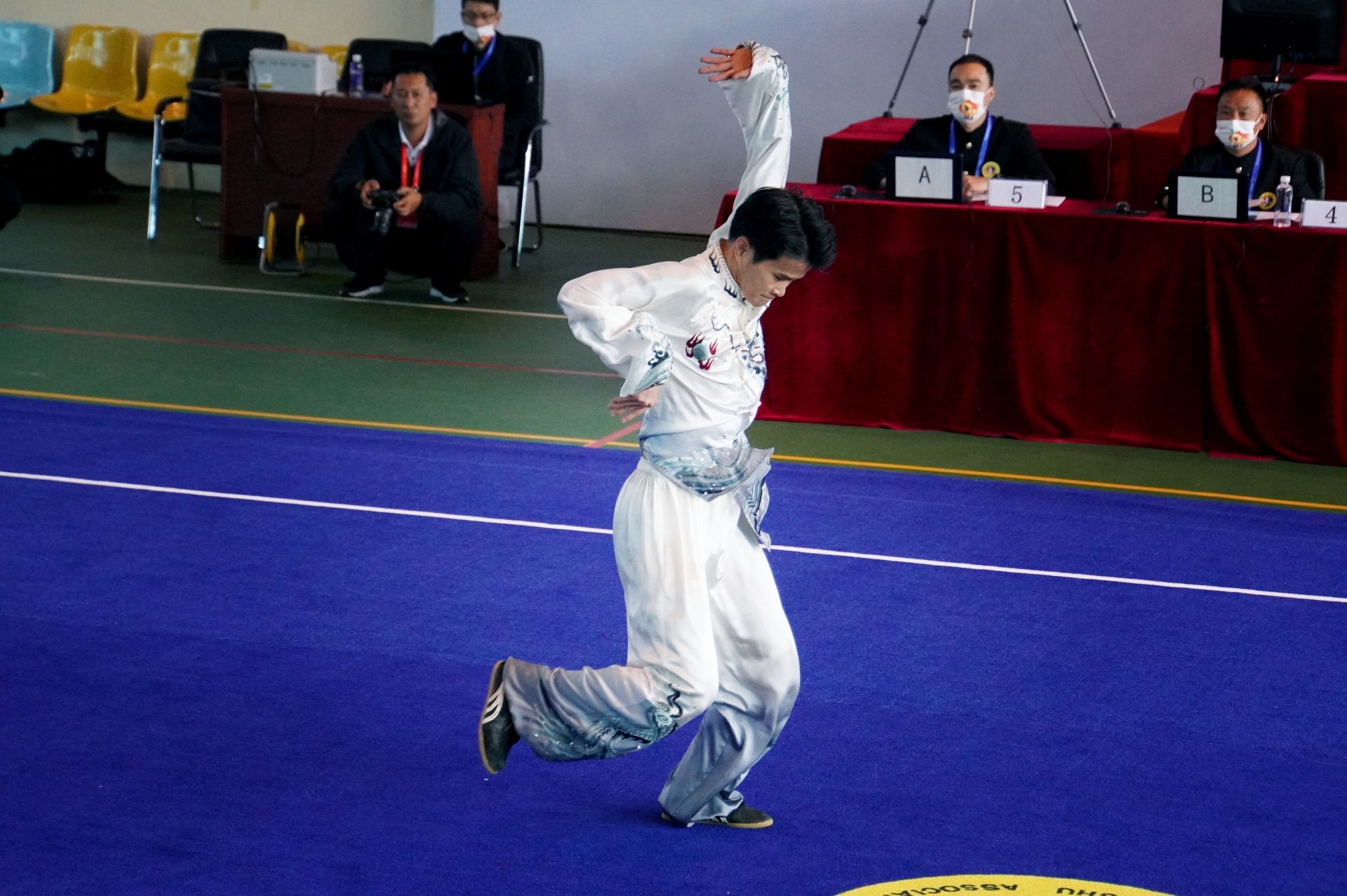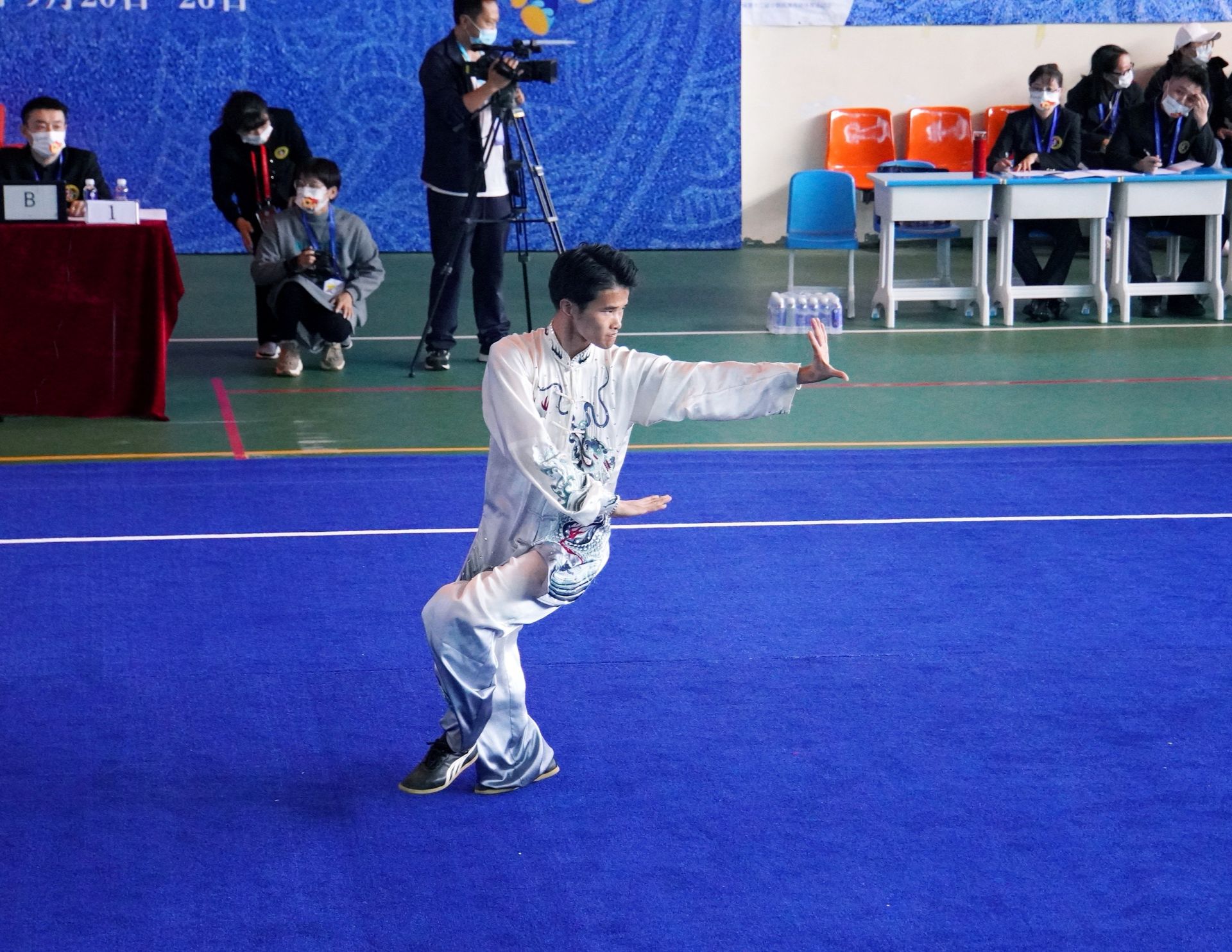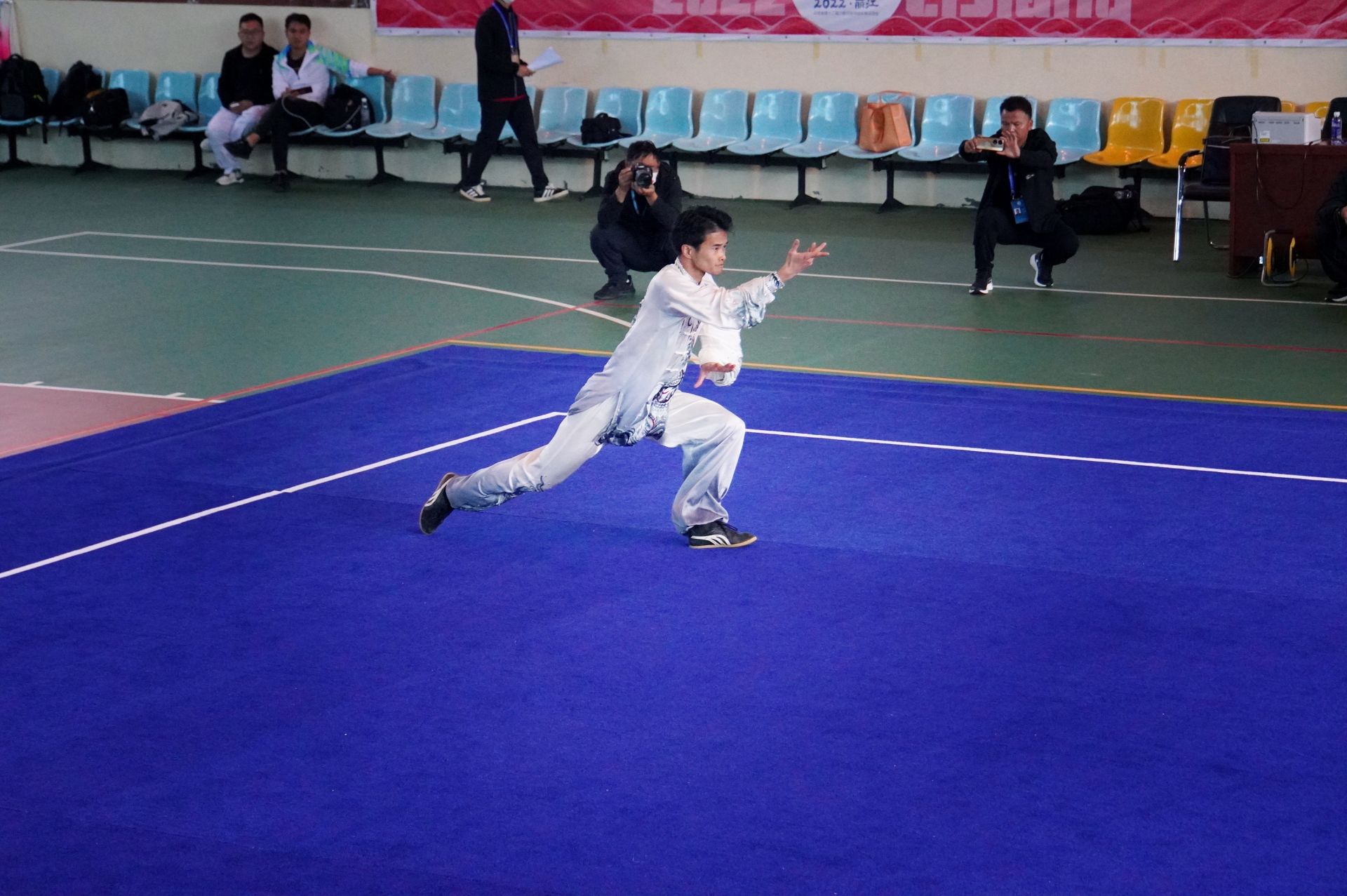 在上午的比赛中,作为第一个出场比赛的文山武术选手,蔡水章打出一套行云流水的八卦掌,一招一式都展现出民族武术的力量与美感,精彩的表现引得现场观众加油喝彩声不断。最终,以9.30分的优异成绩获得男子一类拳术冠军。