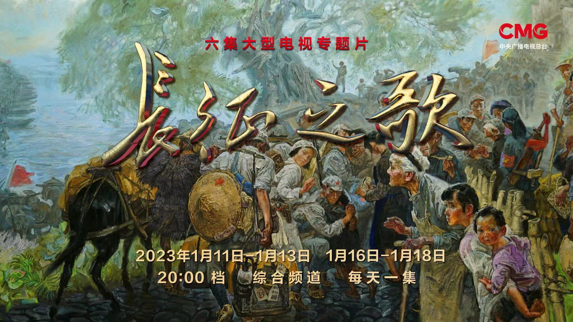 六集大型电视专题片《长征之歌》,将于1月11日至13日,1月16日至18日在央视综合频道20:00档播出,每天一集;次日在央视科教频道21:20档重播。