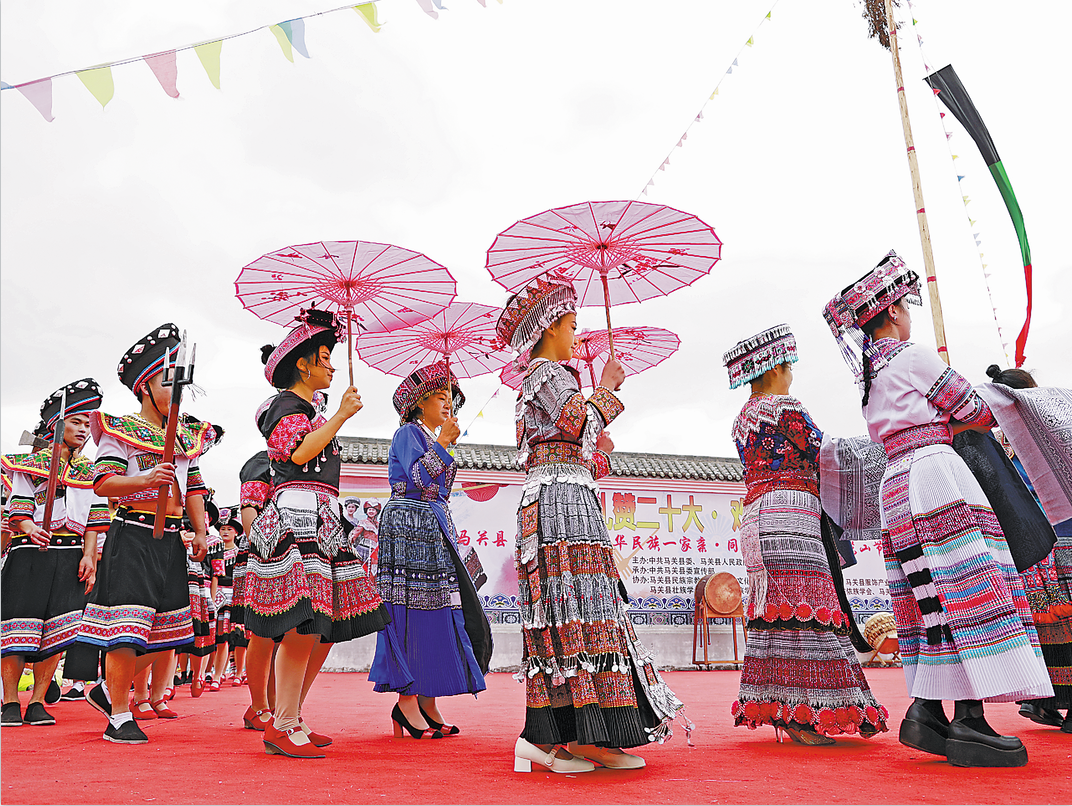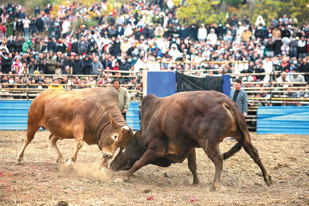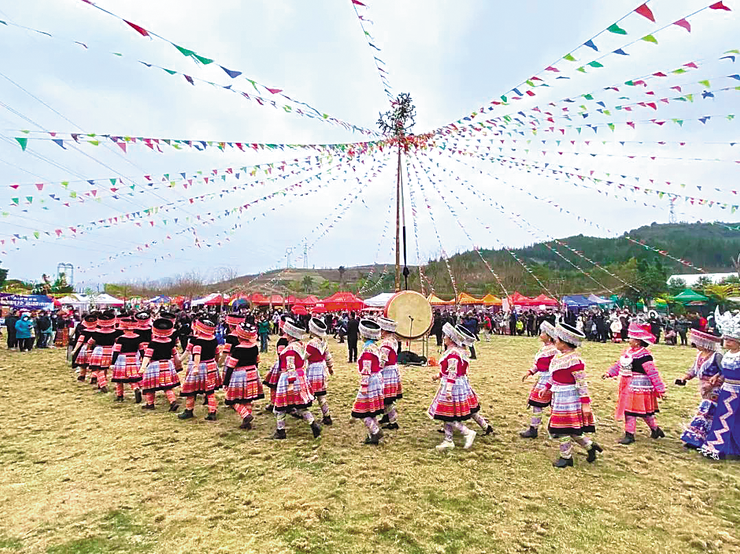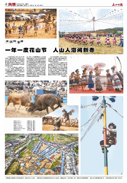 今年春节期间,我州8县(市)都开展了丰富多彩的花山节活动,花山场上有精彩的情歌对唱、民族服饰展演走秀、爬花杆比赛、斗牛、选美比赛、踢脚架和拳击比赛等活动,让来自四面八方的游客体验到了绚丽多彩的苗家风情。