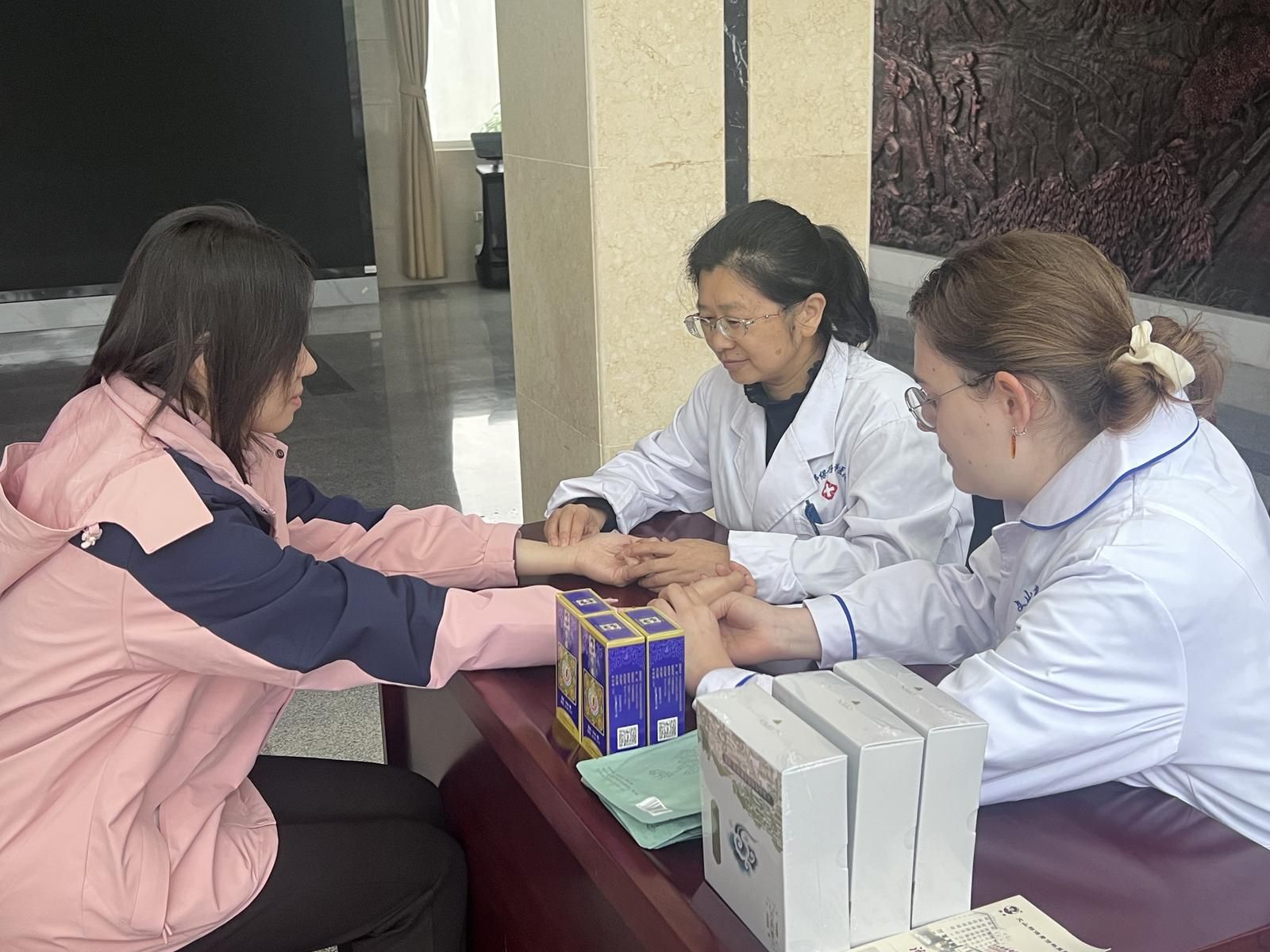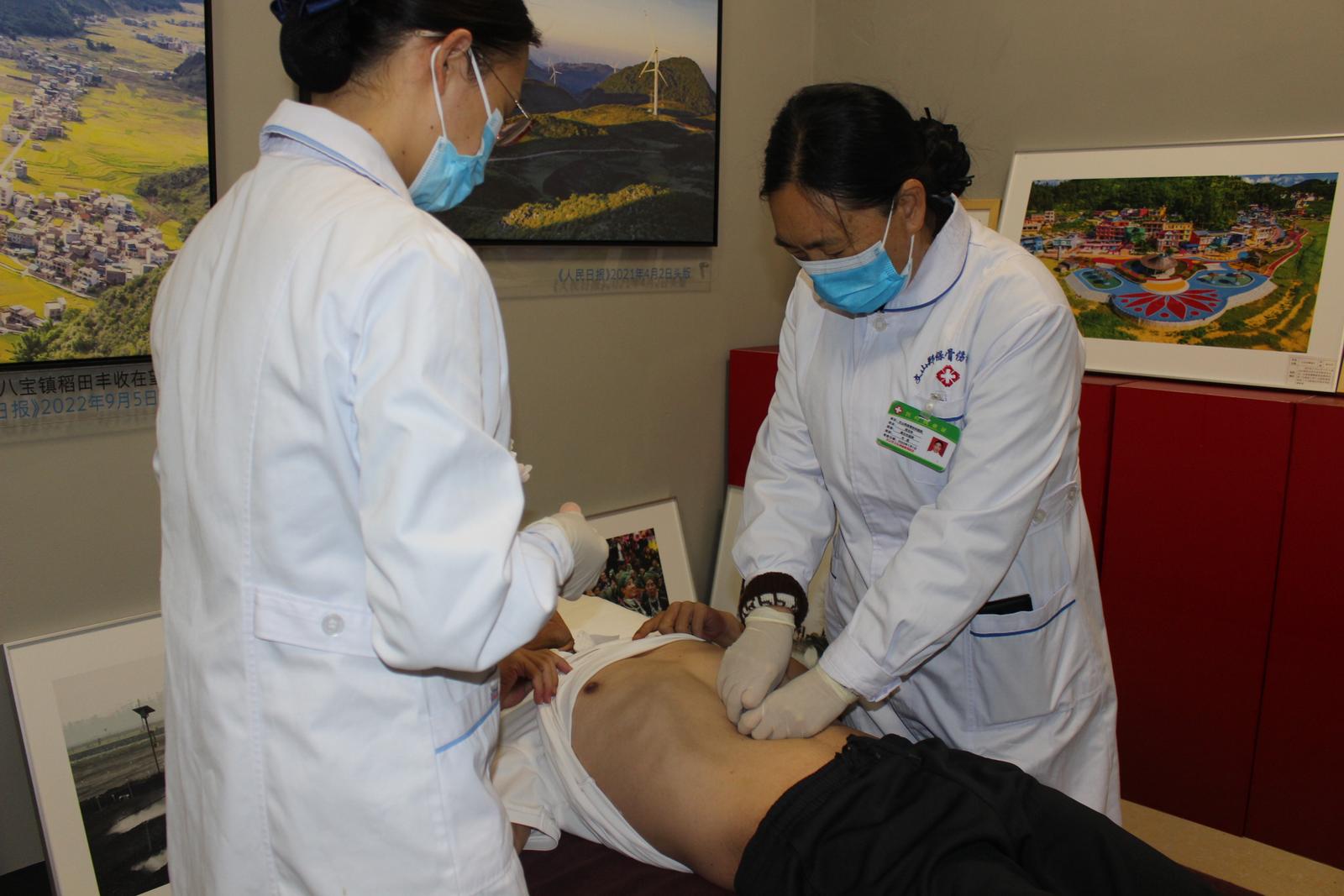 “刚刚医生给我贴了膏药,还帮我扎针,现在感觉身体轻松好多。”文山州融媒体中心记者罗明磊的膝盖之前运动损伤,天气变化的时候会疼,今天特地过来让医生检查,经过把脉、贴膏药、针灸等一系列检查治疗,他说疼痛症状有所缓解,并表示之后会到医院持续治疗。
