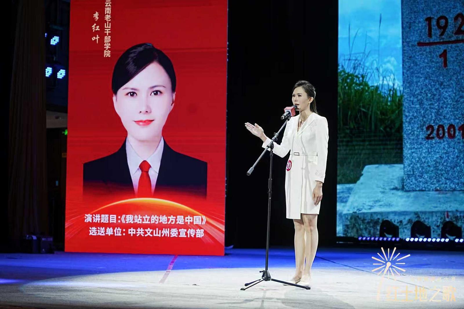 在决赛现场,州委党校、老山干部学院选手李红叶以饱满的热情、生动的语言,讲述了边疆人民守家卫国的动人故事,她的演讲既饱含对文山红色历史的深情回望,又传递出新时代干部传承红色基因、勇担发展使命的坚定信念。