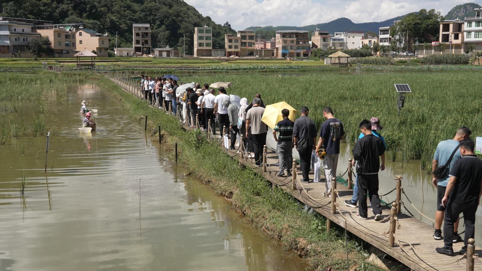 培训期间还组织培训人员现场观摩了丘北县平寨乡“稻+红螯螯虾”综合种养示范基地、红螯螯虾苗种生产基地和稻虾米加工企业——丘北桑秋食品公司稻米加工厂。