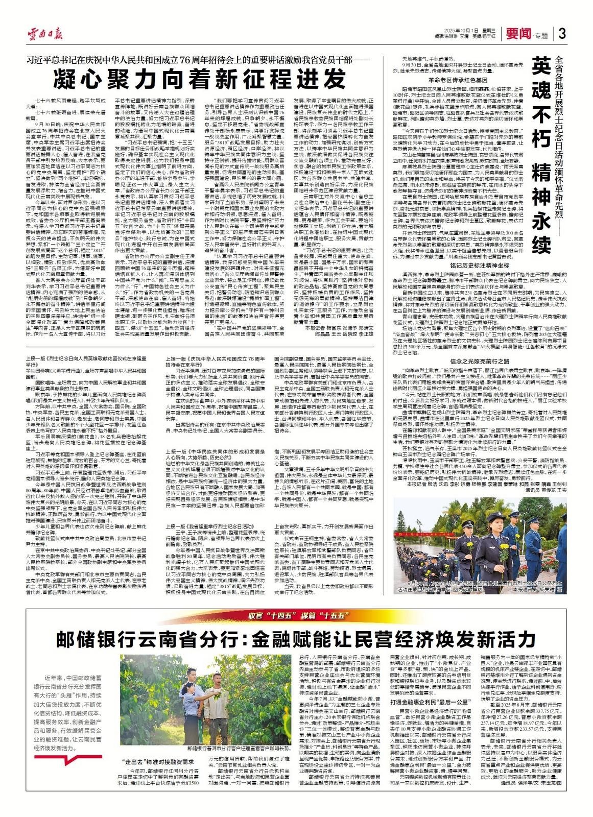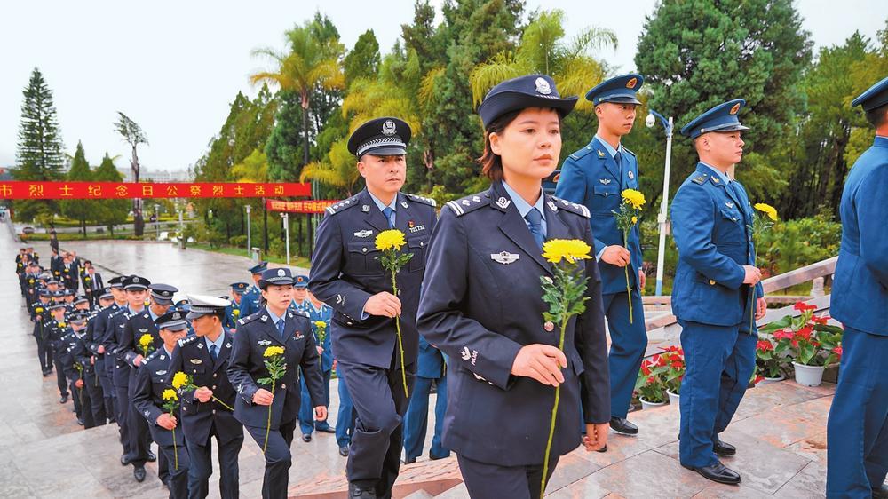 9月30日,2025年红河哈尼族彝族自治州暨蒙自市烈士纪念日公祭烈士活动在蒙自烈士陵园举行。图为敬献鲜花。云南日报通讯员 杨雯璿 摄