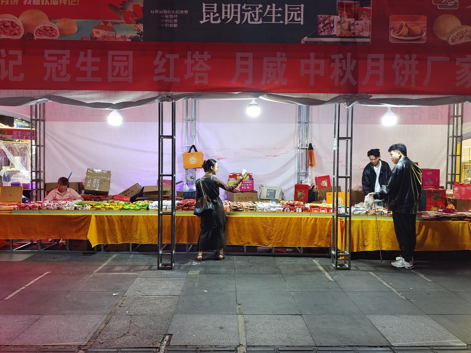 沿街摊位上,月饼、核桃、花生、水果等中秋特色食品纷纷占据显眼位置,它们不仅仅是节日的象征,更是连接亲情的纽带,寄托着人们对美好生活的向往与期盼。特别是月饼,有传统口味坚守经典,有创新口味层出不穷,作为中秋节的标志性食品,月饼以其多样的口味和精美的包装,吸引着越来越多的行人驻足,人们选购热情高涨,浓浓的中秋氛围已在街头巷尾悄然弥漫。