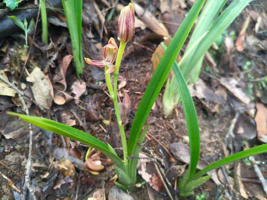 近日,麻栗坡老山省级自然保护区管护局工作人员在猛硐片区开展野外巡护与常态化生物多样性监测过程中,发现5株矮小型兰花,其中2株正处于开花期。经中国科学院植物研究所专家鉴定,确认为兰科兰属珍稀物种——珍珠矮(Cymbidium nanulum)。该物种在我国主要分布于云南、贵州、海南等地,此次为麻栗坡老山省级自然保护区范围内首次正式记录。珍珠矮的发现不仅丰富了保护区兰科植物物种名录,也为深入研究该区域兰科植物的生物地理分布提供了重要资料。