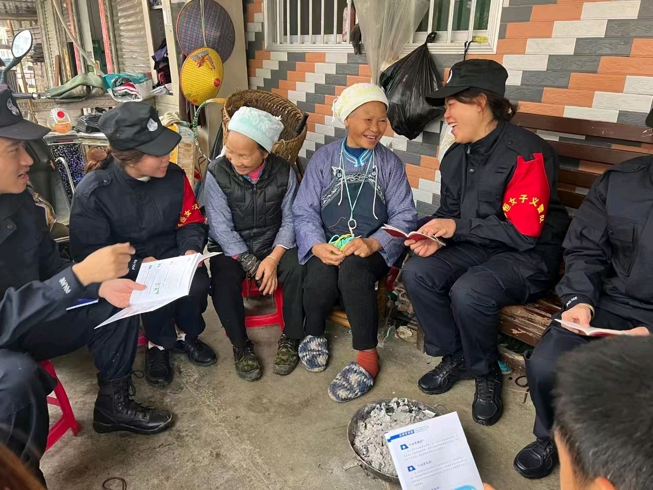 除了口岸贸易,田蓬镇边境治理也在探索新路径。2023年,田蓬镇在平安边境建设中组建了一股新力量,她们就是“郎恒女子义警队”。由于郎恒边境派出所管辖的9个村委会辖区面积广、人口结构复杂,单靠民警的力量很难做到事事兼顾,这支队伍便应运而生。她们积极参与反诈宣传、矛盾调解、安全巡查等基层工作,目前成员已有26人。“我们坚持用脚步丈量村子的每一寸土地,用真诚的心对待每一位乡亲,无论是帮他们解决生活的难题还是调解邻里的纠纷,我们都会全力以赴。”田蓬镇木坝村委会郎恒街小组村民潘春燕说。自女子义警队成立以来,累计收集群众诉求76条,协助民警化解矛盾纠纷43起,推动解决民生问题28件,开展各类普法宣传活动累计65场,覆盖群众1.5万余人次,发放宣传资料8000余份,辖区内电信诈骗发案率环比下降37%。