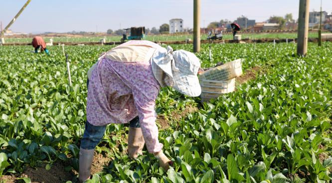 兴发蔬菜基地的工人正在采收菜心 刘畅 摄