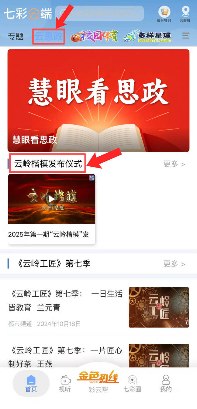 下载七彩云端APP,在首页进入《云思政》专栏,观看“云岭楷模”发布仪式精彩内容。
