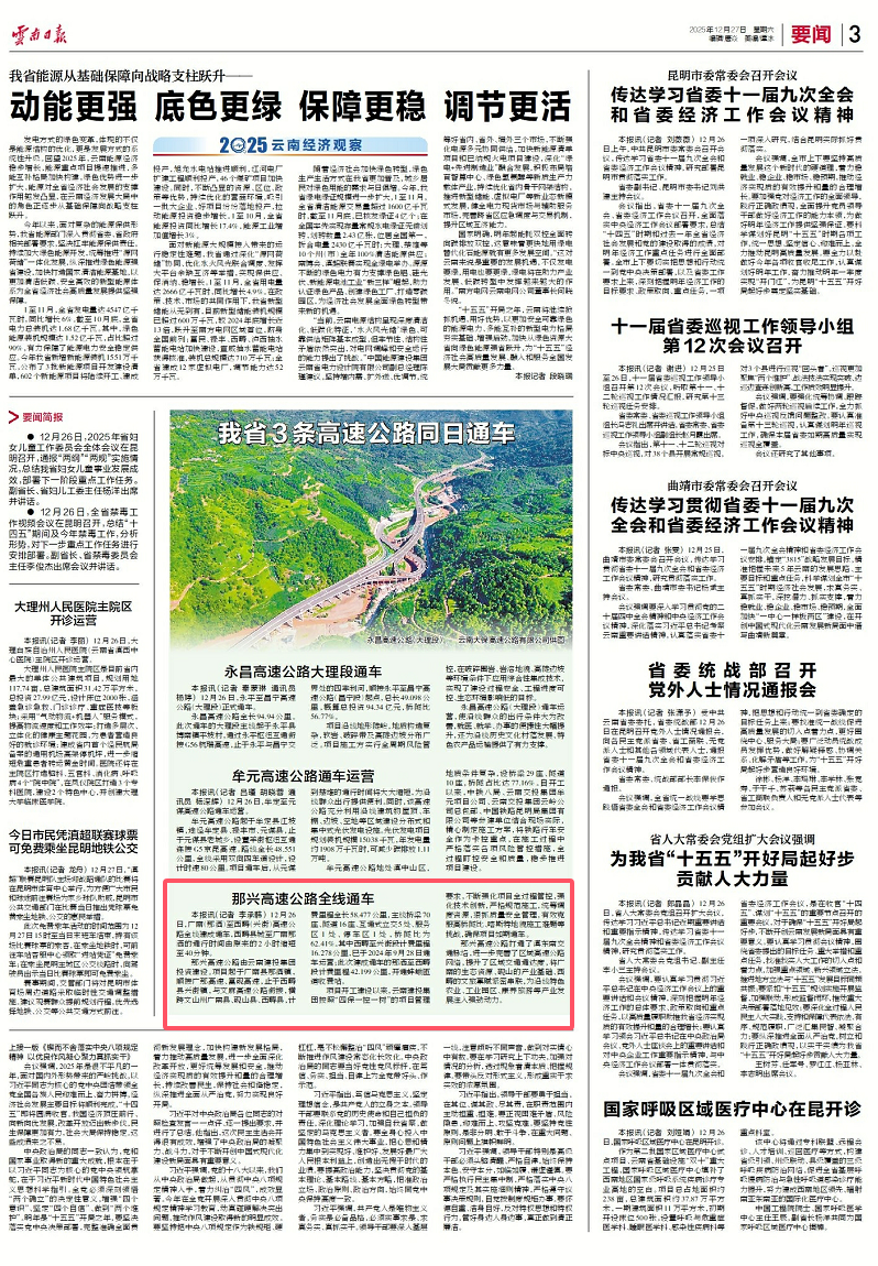 项目开工建设以来,云南建投集团按照“四保一控一树”的项目管理要求,不断强化项目全过程管控,强化技术创新,严格规范施工,统筹调度资源,狠抓质量安全管理,有效克服高桥隧比、喀斯特地貌施工难题等挑战,确保项目如期通车。